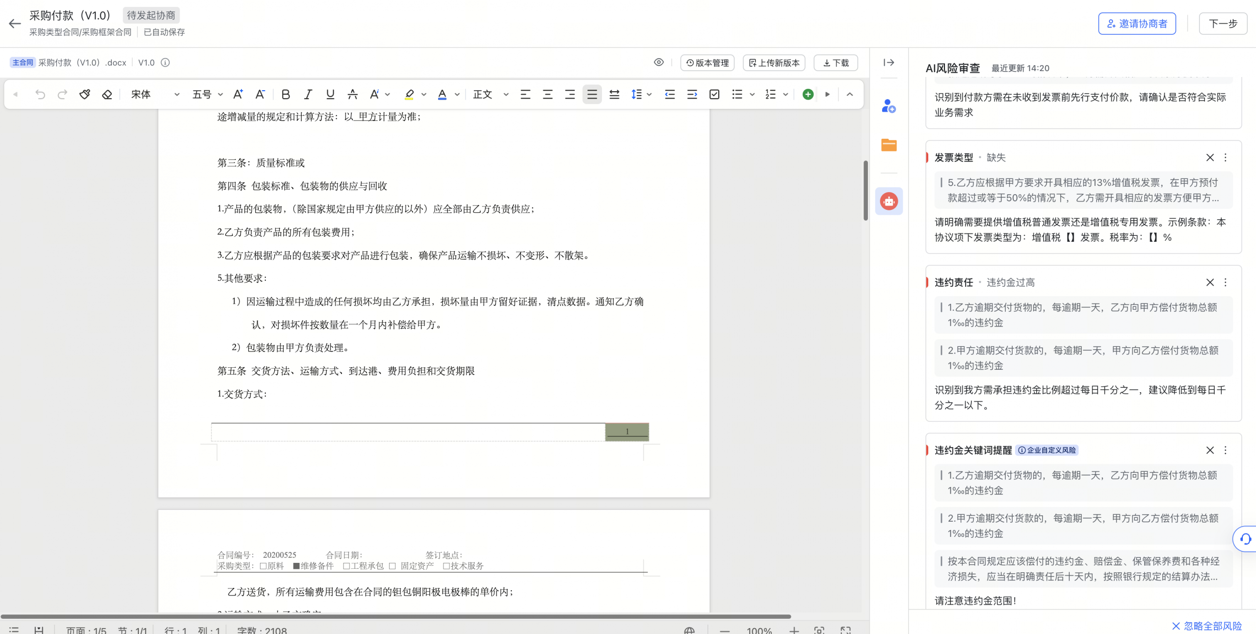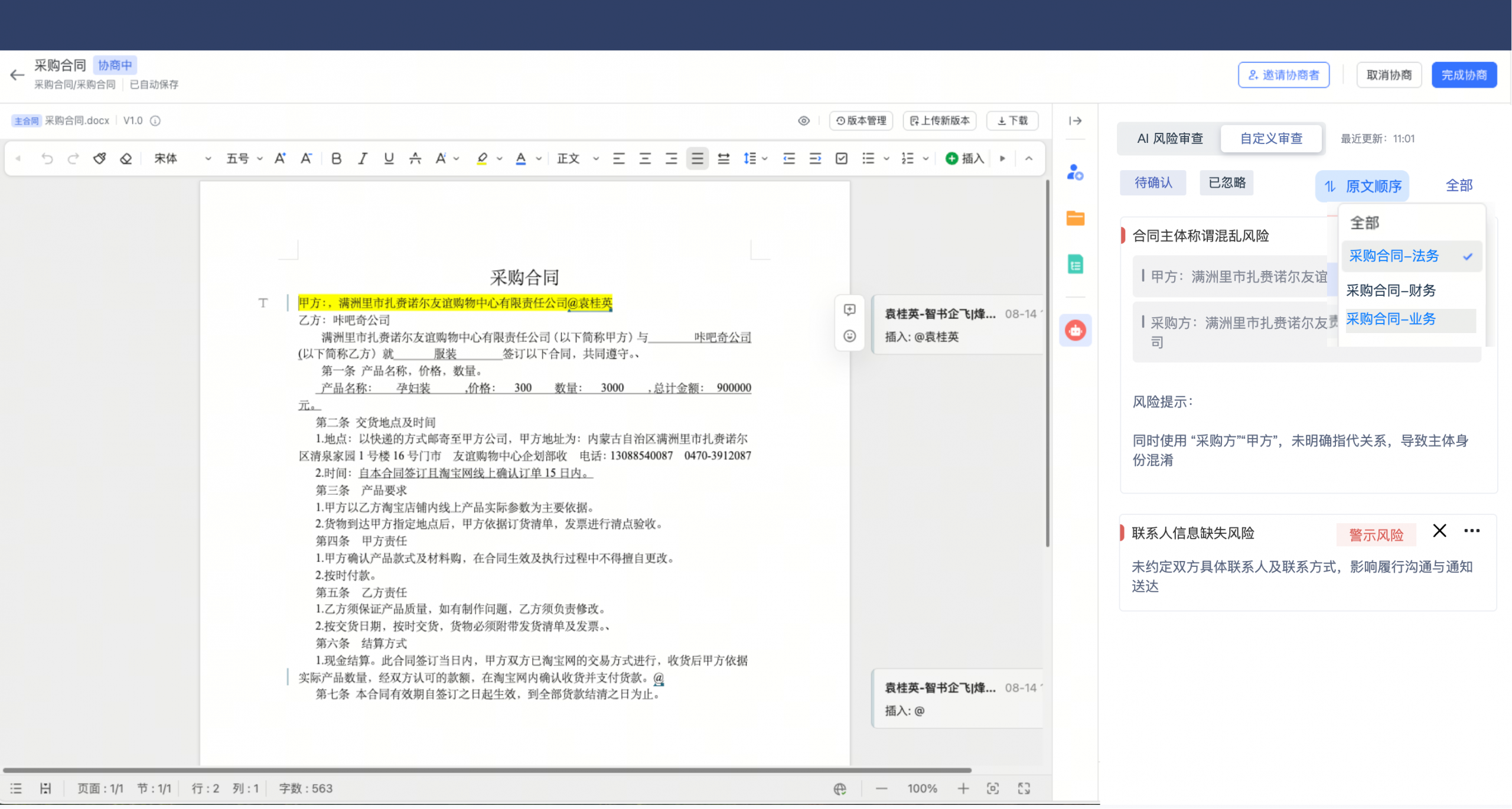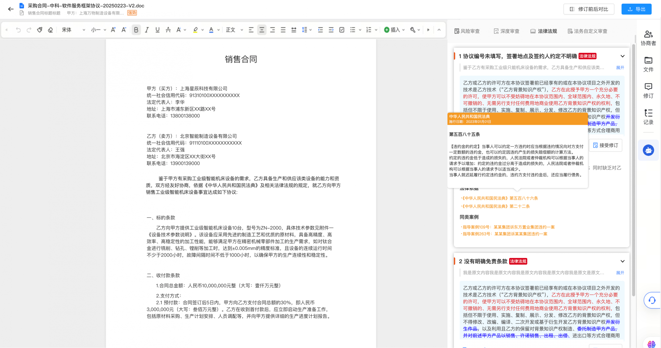 - ⭐️AI智能审查:360°风险洞察,精准规避潜在风险