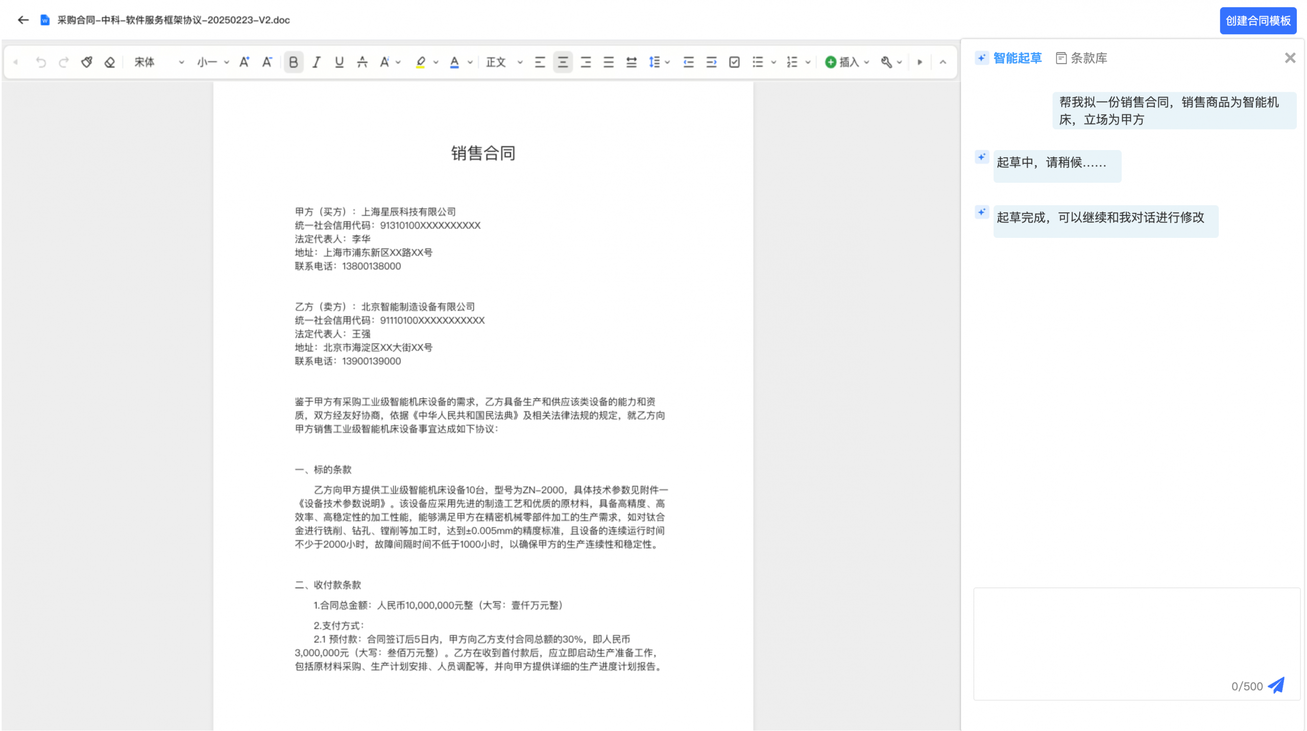 - ⭐️AI智能起草:秒级生成高质量合同初稿