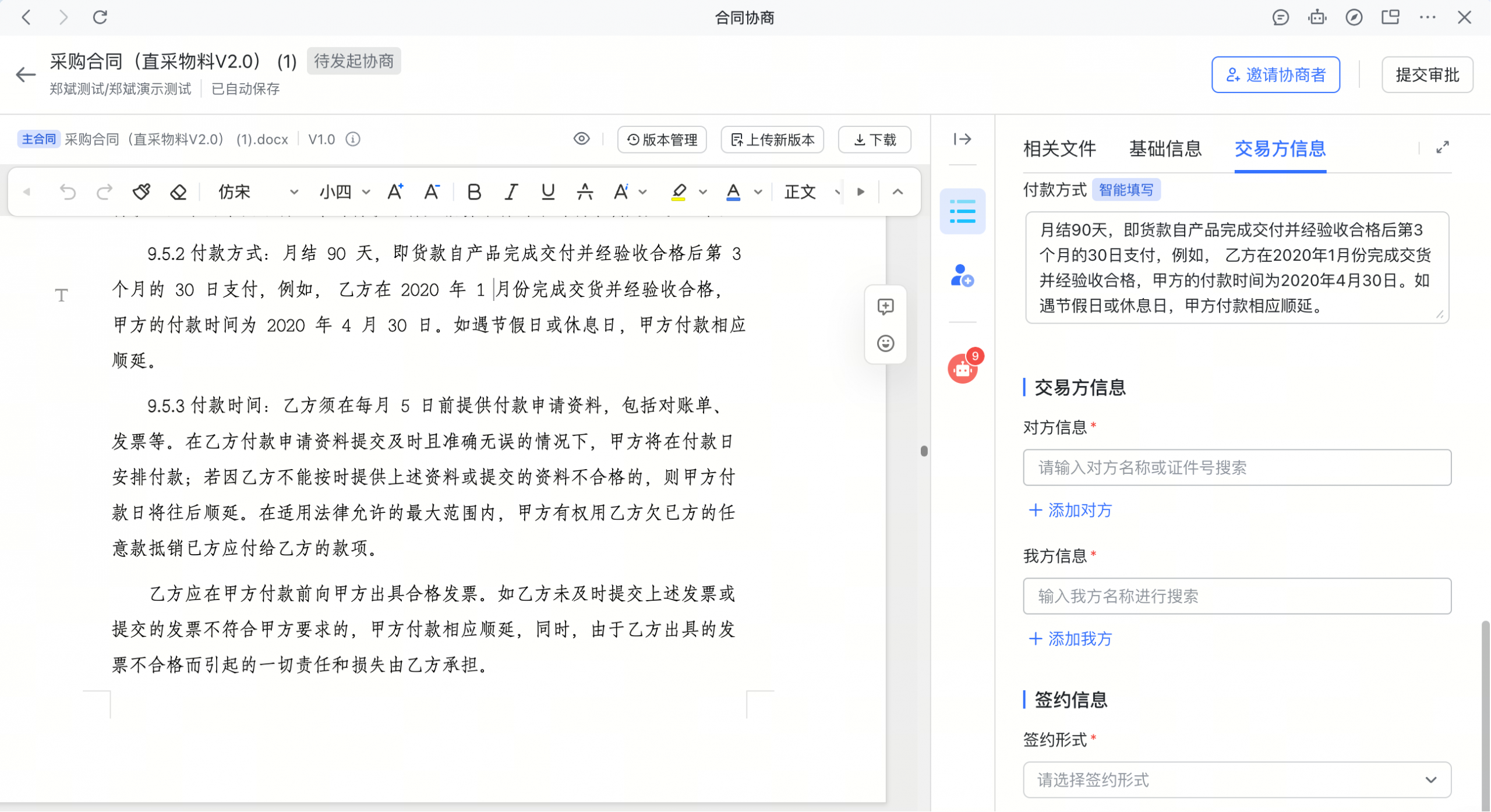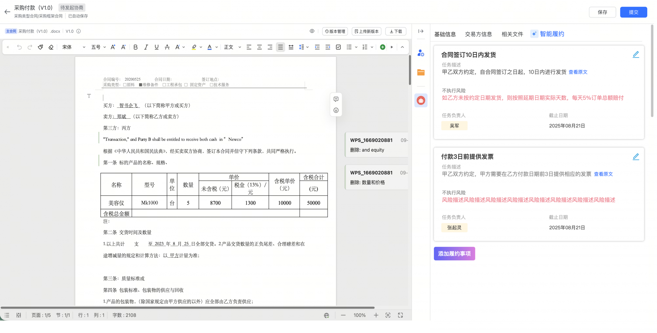 - 功能场景:合同起草时AI自动从合同中提取并创建履约任务