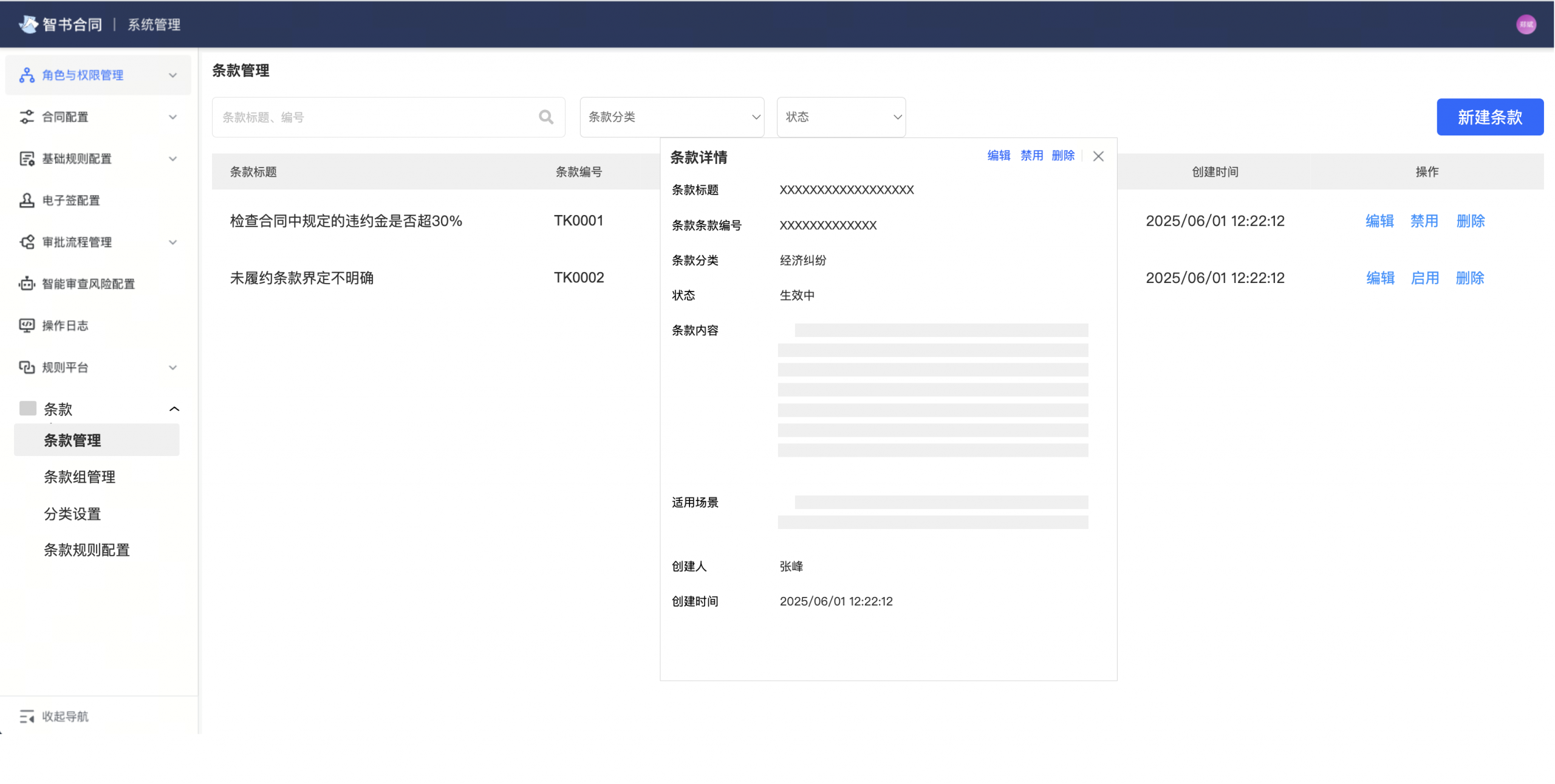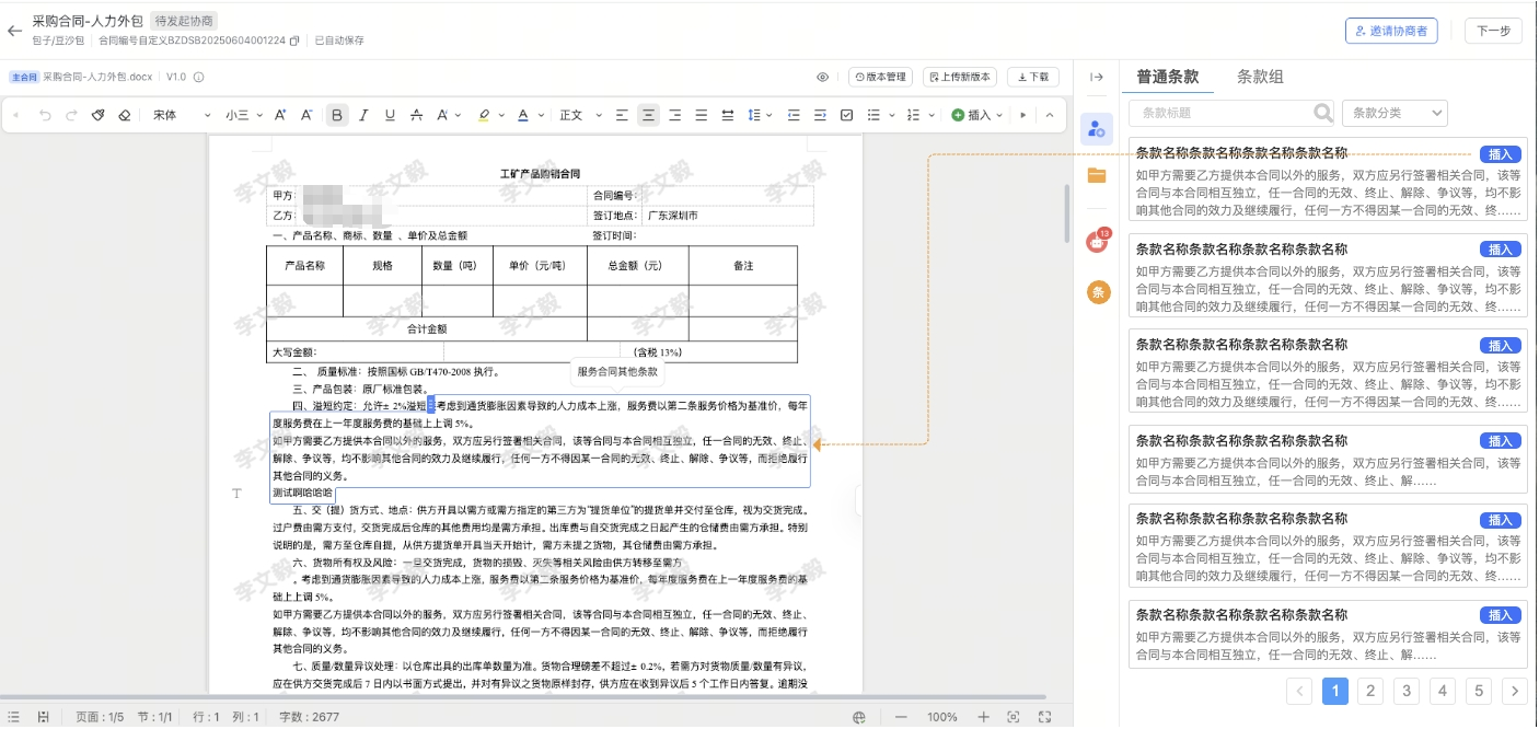 - ✅ 智能条款库:支持企业自定义和维护常用条款,起草时一键插入,确保条款合规性与一致性。