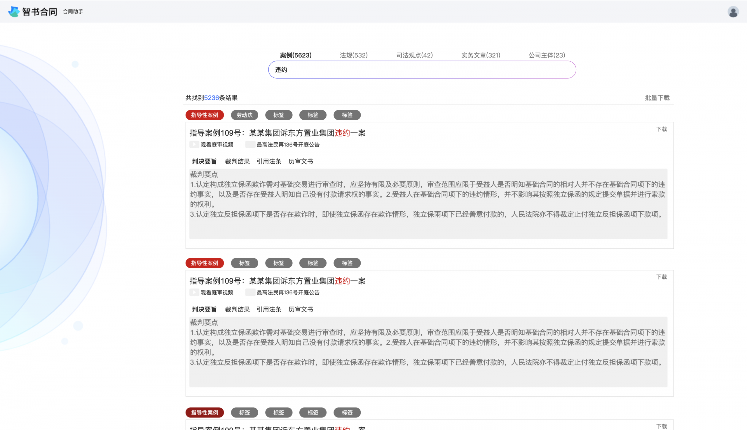 - 功能场景:依赖垂类大模型的能力,可以实现对合同条款的智能审查。快速识别出合同中潜在风险条款,提前规避合同风险,减少法律纠纷和财务损失